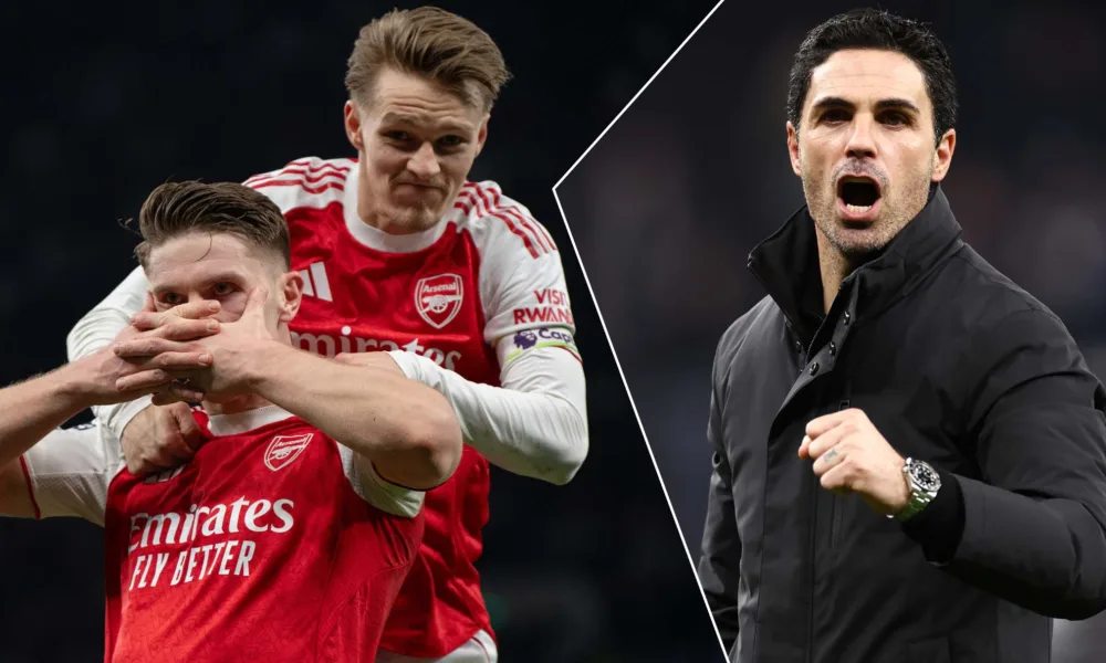 Eberechi Eze and Viktor Gyökeres each scored twice as Arsenal beat Tottenham 4–1; Rice had key error.