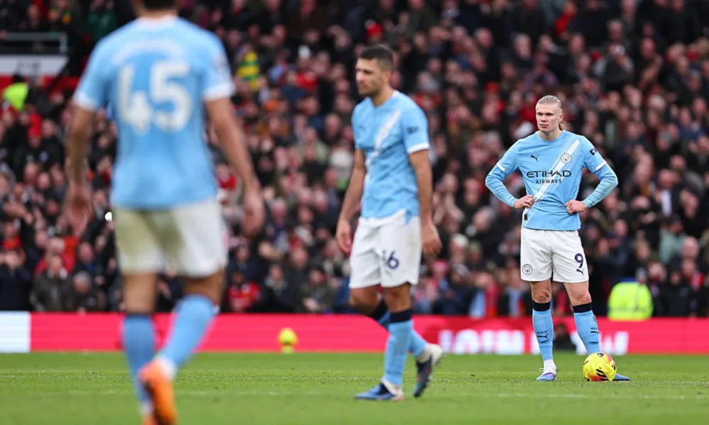 City lost 2-0 at Old Trafford; makeshift defence and blunt attack leave Premier title hopes in doubt